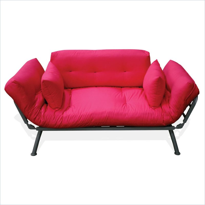 The Modern Loft Solid Series Mali Futon Combo is great for small studio apartments, offering a comfortable place to sit or lie down anytime! This twin sleeper comes complete with mattress and accent pillows plus a precision metal alloy frame for durability and style. The unique design includes 2 six-position side wings that convert this sofa sleeper to a multi-positional lounger and suitable sleep surface as needed. Perfect for use in the dorm, living room or large bedroom. The included mattress is made in the USA and is covered in poly-cotton and soft-suede materials. ... Read more